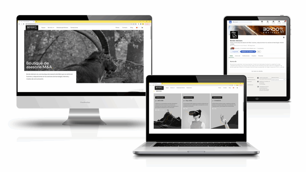 Bondo Advisors es una compañía de M&A especializada en tecnología que necesitaba crear una nueva identidad. Una imagen que posicionara a la marca en un lugar visible dentro del territorio que habita. Una nueva identidad que trasmitiera fuerza, calidad y la dotara de la personalidad necesaria para convertirse en la marca de referencia de su sector.