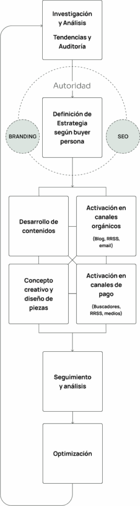 Diseñamos estrategias que posicionan a las marcas como referentes en su categoría, construyendo confianza a largo plazo. Definimos plataformas estratégicas sólidas que articulan propósito, propuesta de valor, tono, canales y territorios de conversación. Todo con una visión multicanal que consolida autoridad y permite que la marca sea mencionada por las IA.
