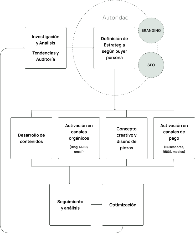 Nuestra naturaleza nos permite trabajar en estrategias completas para nuestros clientes. Esto nos permite ayudar en todas las fases del proceso, definir los objetivos e ir optimizando las acciones en tiempo real para alcanzarlos.